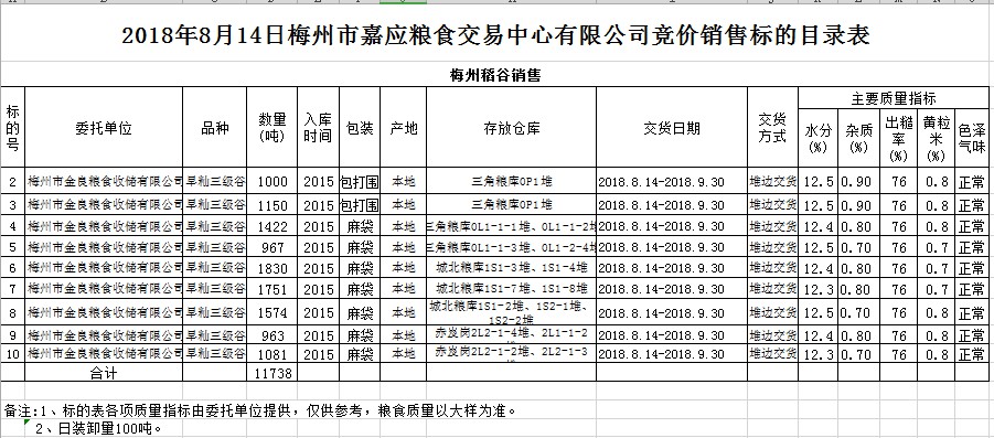 交易時間和地點(diǎn):2018年8月14日(星期二)上午10時。廣東省梅州市彬芳大道南161號梅州市糧食交易中心3樓。
