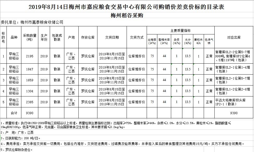 2019年8月14日梅州市嘉泰糧食收儲(chǔ)公司稻谷購銷價(jià)差聯(lián)動(dòng)標(biāo)的交易會(huì)
