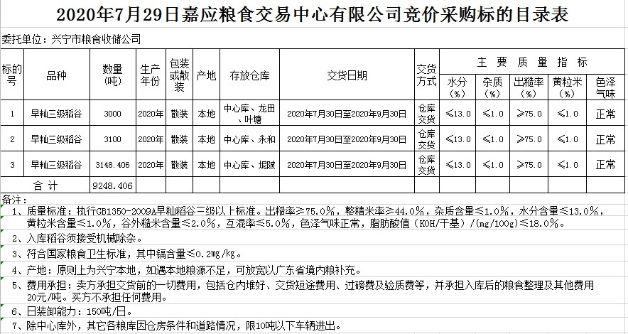 受客戶委托,梅州市嘉應(yīng)糧食交易中心有限公司定于2020年7月29日(星期三)舉辦糧食競價(jià)交易會,興寧市糧食收儲公司擬采購2020年早秈稻9248.406噸。