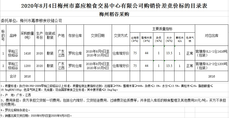 2020年8月4日梅州市嘉泰糧食收儲(chǔ)公司稻谷購(gòu)銷價(jià)差聯(lián)動(dòng)標(biāo)的交易會(huì)