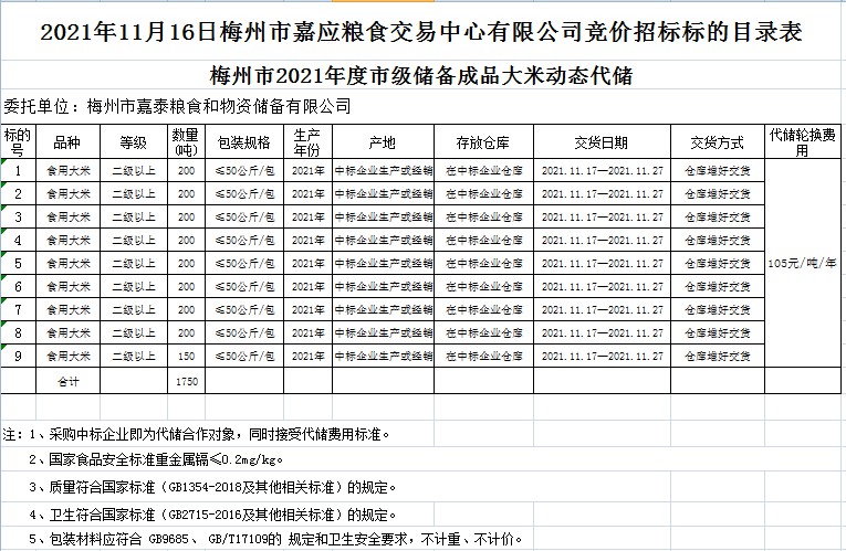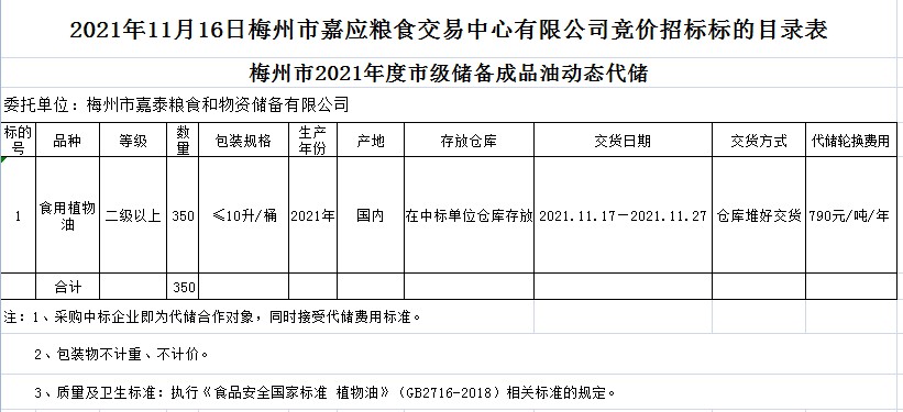 2021年11月16日梅州市嘉泰糧食和物資儲(chǔ)備有限公司競(jìng)價(jià)動(dòng)態(tài)代儲(chǔ)公開(kāi)招標(biāo)公告