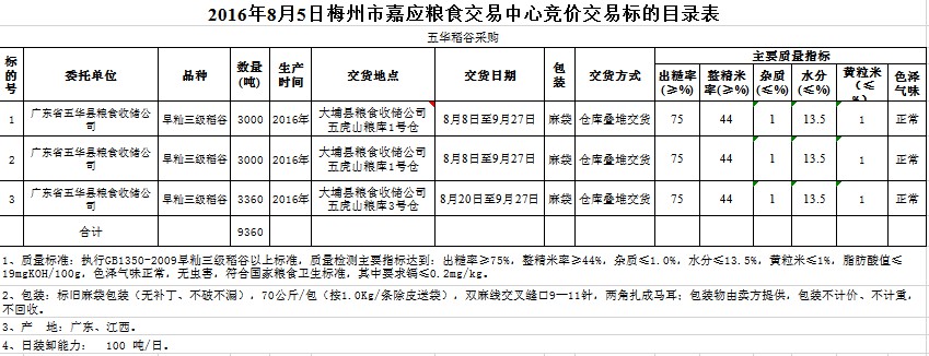 2016年8月5日廣東省五華縣糧食收儲(chǔ)公司稻谷采購(gòu)