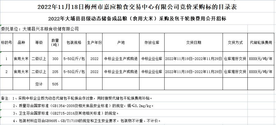 2022年大埔縣縣級(jí)動(dòng)態(tài)儲(chǔ)備成品糧采購(gòu)及包干輪換費(fèi)用公開(kāi)招標(biāo)公告