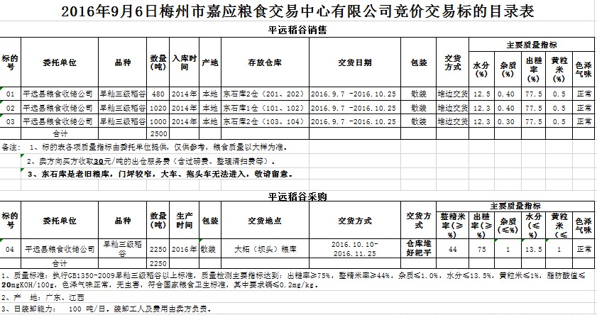 受客戶委托,平遠縣糧食收儲公司擬銷售2014年早秈三級稻谷2500噸、采購2016年產早秈三級稻谷2250噸。
