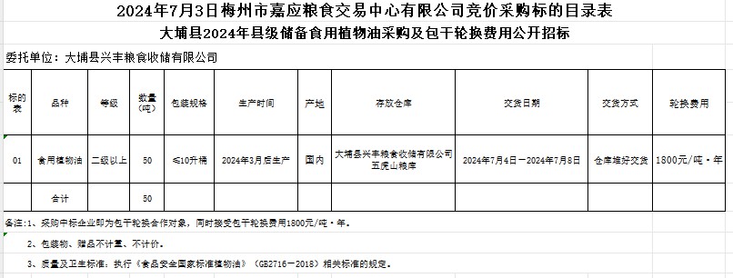大埔縣2024年縣級儲備食用植物油采購及包干輪換費用公開招標(biāo)公告