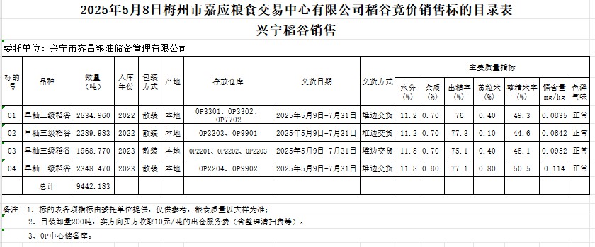 2025年5月8日興寧市齊昌糧油儲備管理有限公司稻谷銷售