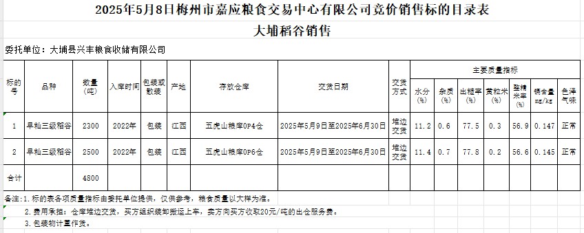 文件下載:2025年5月8日大埔縣興豐糧食收儲(chǔ)有限公司稻谷銷售
