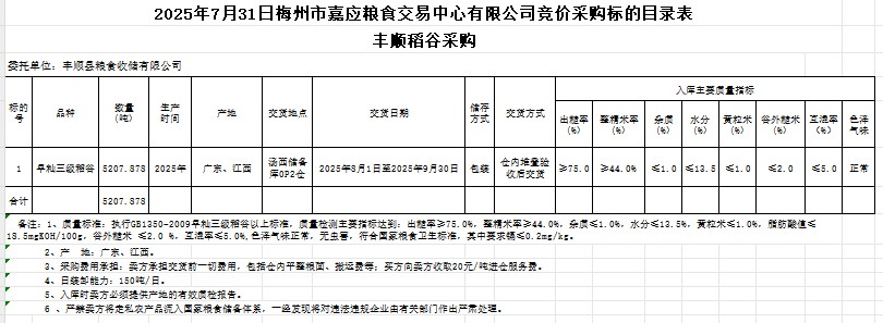 2025年7月31日豐順縣糧食收儲有限公司稻谷采購